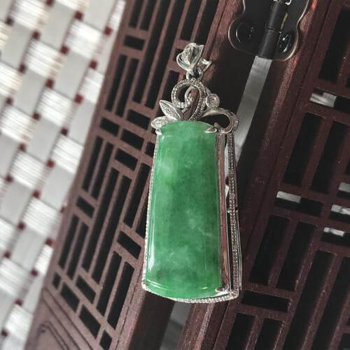 白底青翡翠属于中档翡翠,少数绿白分明,颜色艳丽,色形好,色底协调的白底青翡翠,其价值更高,这种类型的翡翠,制作而成的饰品,很适合男士佩戴,给人一种充满活力的感觉。
