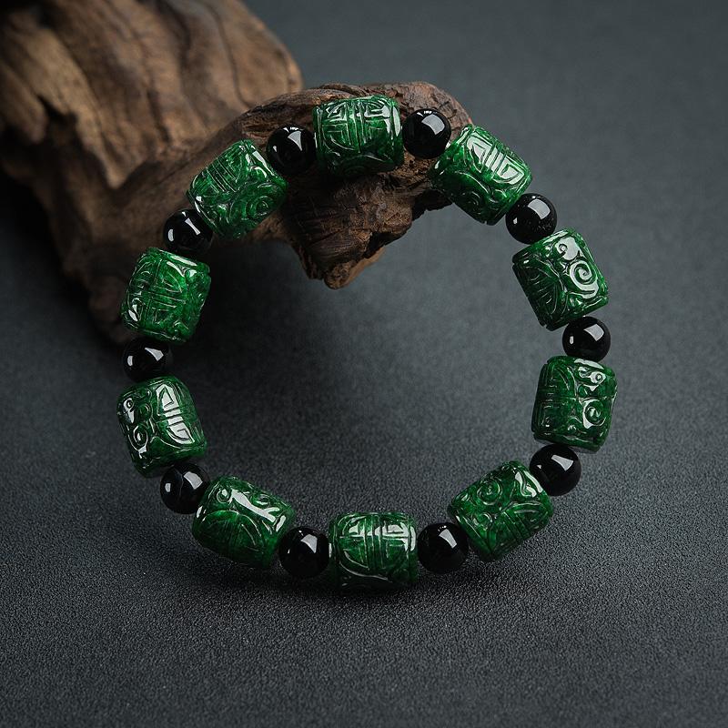 干青种翡翠,是指一种几乎满绿色的翡翠。它的绿色浓度大,即颜色比较深,颜色深绿、黄绿、深绿至墨绿,带有黑点,有的分布比较均匀,有的深浅不均,往往会附带黑点。常有裂纹,不透明,显得很干。干青种由于翡翠硬玉的存量非常小,因而不算是真正意义的翡翠,所以其整体会比较低廉,通常单价在三四千元到几百元之间。