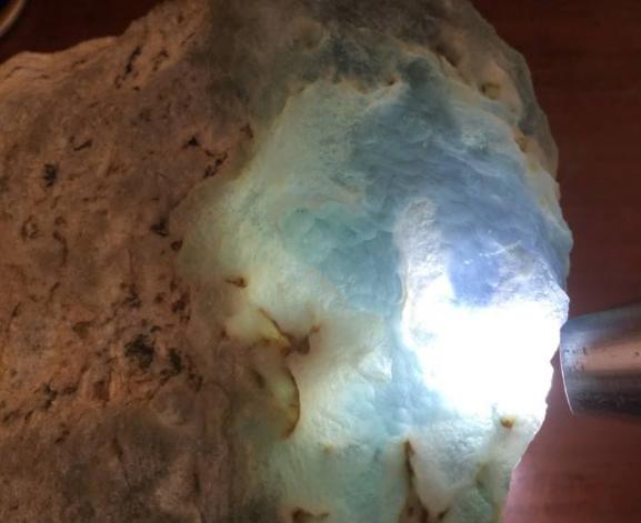 翡翠毛料深入内部的颜色,大家也不陌生,如飘花。典型的飘花是绿色或蓝色的色带、色块或色团。晴水,带淡淡的绿味,色融于种,清新淡雅,以均匀性好见长;蓝水则是蓝味色调,或淡或浓,也是均匀性上佳。