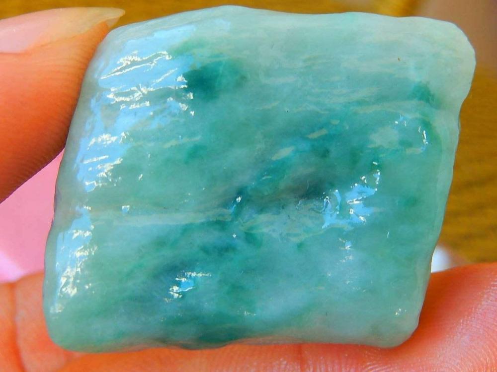 在欣赏冰糯种时,应以其结晶颗粒均匀,质地细腻,裂痕和棉纹少为上品。冰糯种翡翠看上去较透明清澈,介于半透明之间,好一点的则较透明,这类的冰糯种是较受人们喜欢的,冰糯种中带有蓝色的絮花状,或断断续续的脉带状的,称为“蓝冰花”,它的水头也比较好,再加上它的颜色是蓝色,有时候颇受人们的青睐。不过它在冰糯种翡翠中,是属于普通的品种,单单从它的价值上看,它与无色冰糯种没有高低之分。